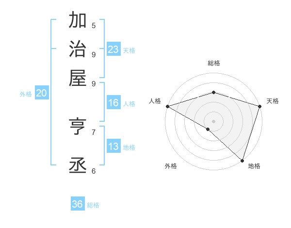 加治屋 亨丞さんを姓名の画数から五運を鑑定