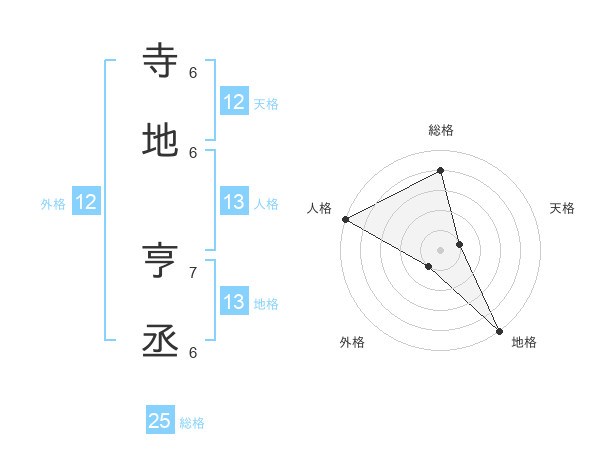 寺地 亨丞さんの総格は25画の4点!