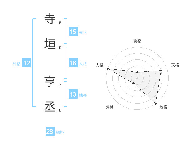 寺垣 亨丞さんを姓名の画数から五運を鑑定