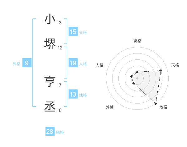 小堺 亨丞さんの地格は13画の5点!