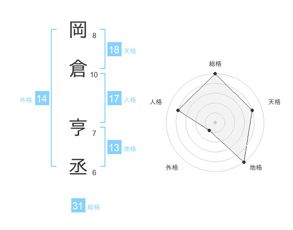 岡倉 亨丞さんを姓名の画数から五運を鑑定