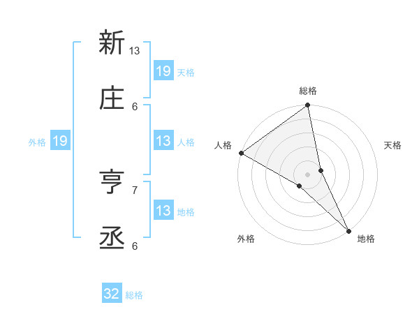 新庄 亨丞さんの地格は13画の5点!