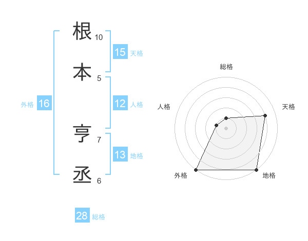根本 亨丞さんを姓名の画数から五運を鑑定
