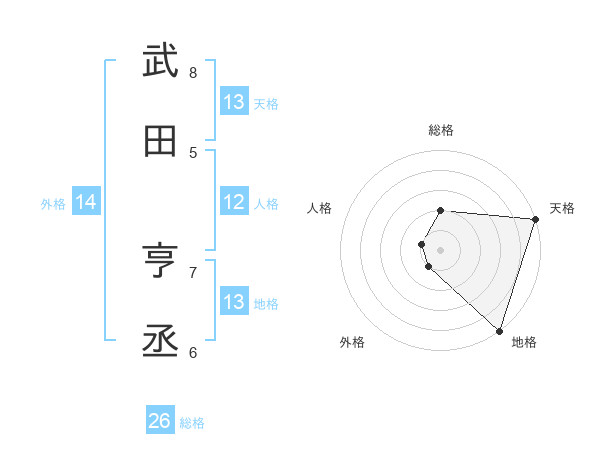 武田 亨丞さんの天格は13画の5点!