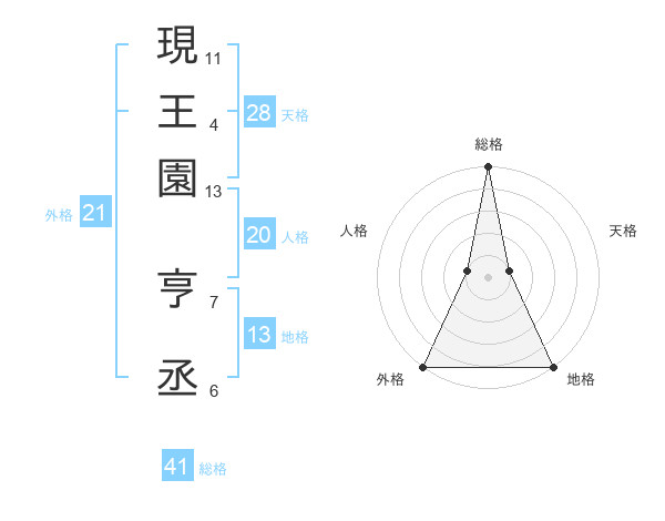 現王園 亨丞さんを姓名の画数から五運を鑑定