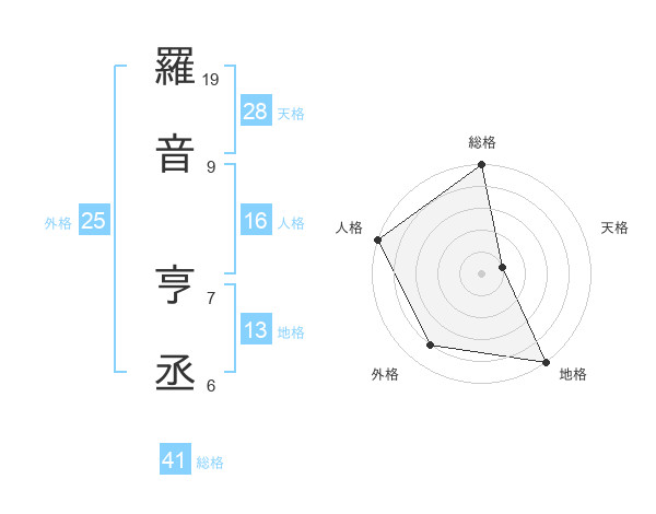羅音 亨丞さんの天格は28画の1点!