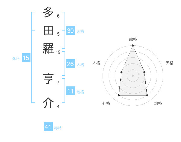 多田羅 亨介さんの総格は41画の5点!