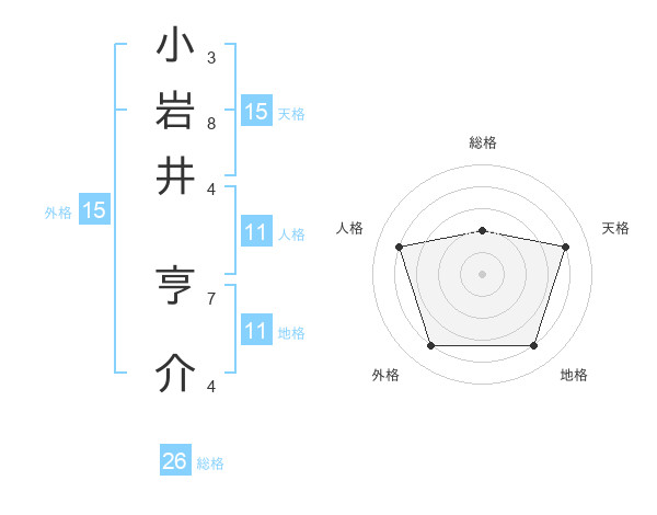 小岩井 亨介さんを姓名の画数から五運を鑑定