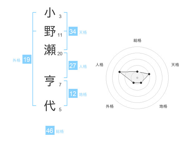 小野瀬 亨代さんを姓名の画数から五運を鑑定