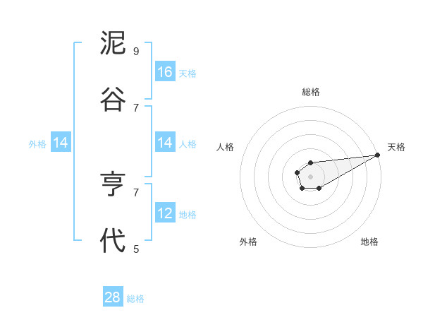 泥谷 亨代さんを姓名の画数から五運を鑑定