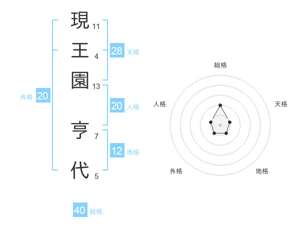 現王園 亨代さんを姓名の画数から五運を鑑定