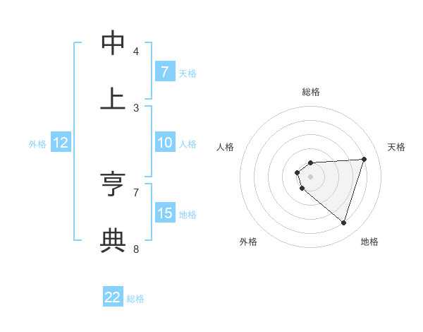 中上 亨典さんの総格は22画の1点!