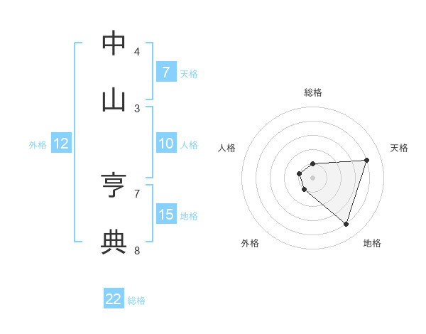中山 亨典さんの総格は22画の1点!