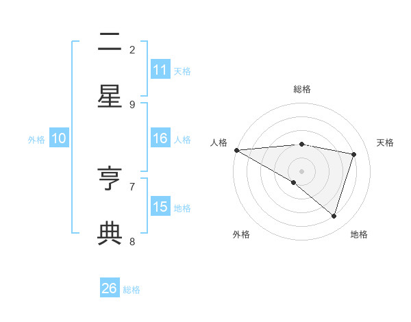 二星 亨典さんの総格は26画の2点!