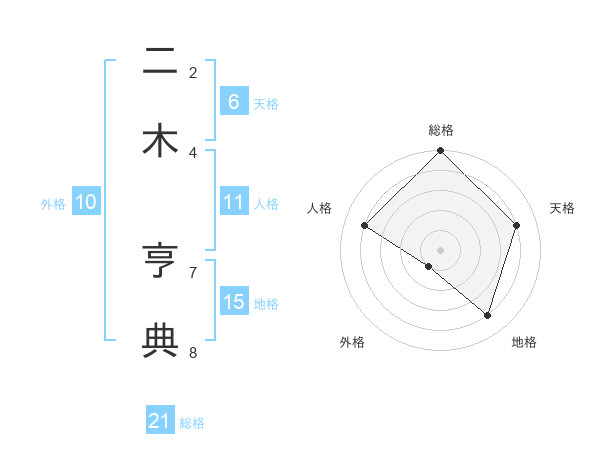 二木 亨典さんの総格は21画の5点!