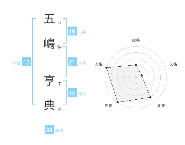 五嶋 亨典さんを姓名の画数から五運を鑑定