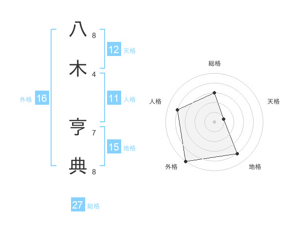 八木 亨典さんの総格は27画の3点!