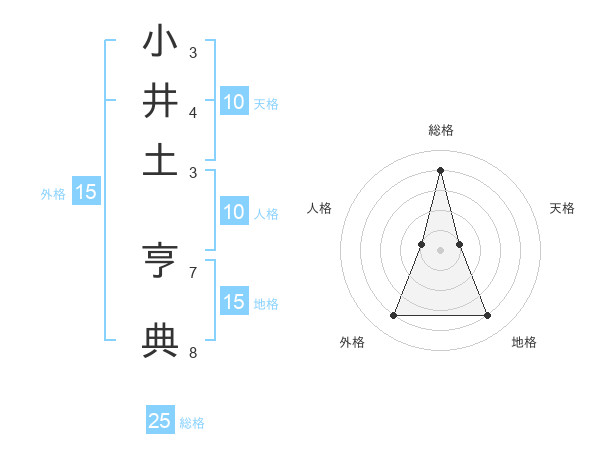 小井土 亨典さんを姓名の画数から五運を鑑定