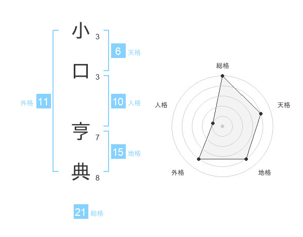 小口 亨典さんの総格は21画の5点!