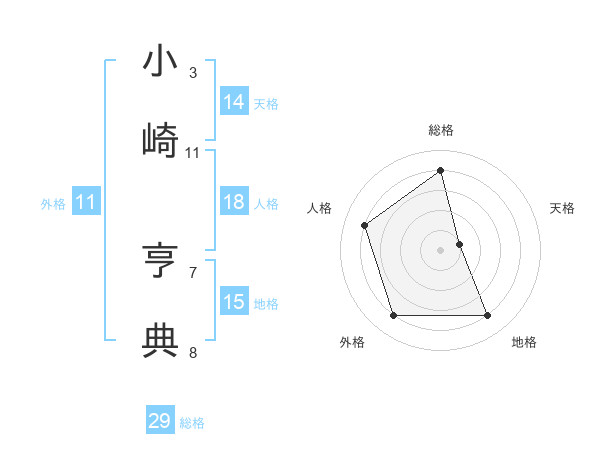 小崎 亨典さんを姓名の画数から五運を鑑定
