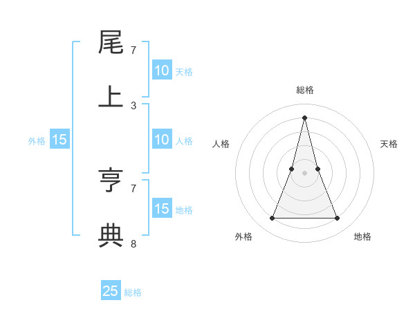 尾上 亨典さんの総格は25画の4点!