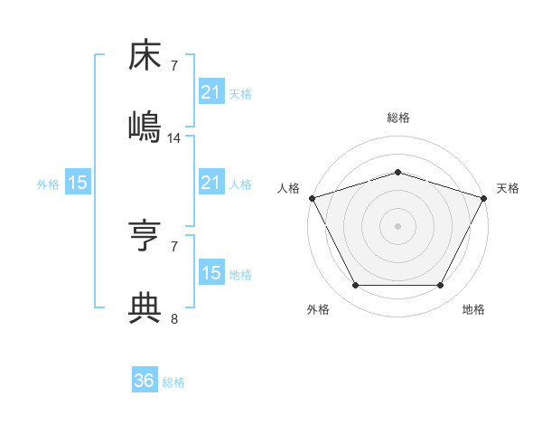 床嶋 亨典さんを姓名の画数から五運を鑑定