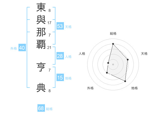 東與那覇 亨典さんを姓名の画数から五運を鑑定