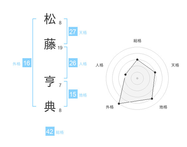 松藤 亨典さんを姓名の画数から五運を鑑定