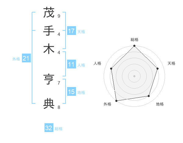 茂手木 亨典さんを姓名の画数から五運を鑑定