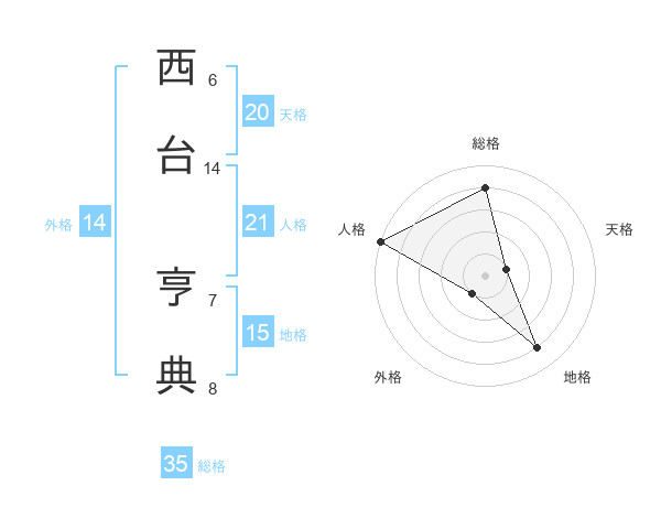 西台 亨典さんの総格は35画の4点!
