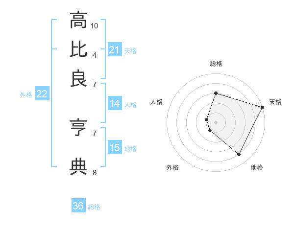高比良 亨典さんの天格は21画の5点!