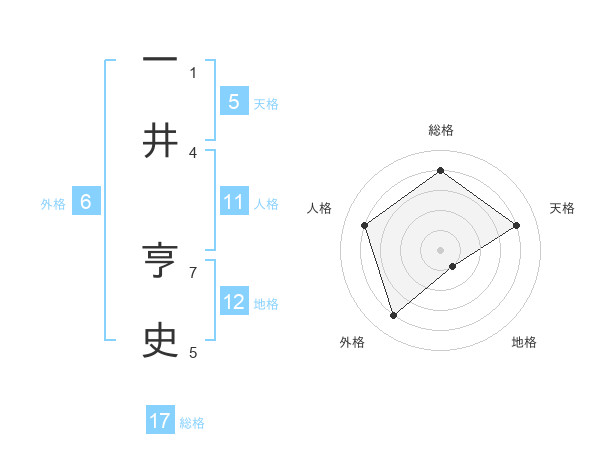 一井 亨史さんの総格は17画の4点!