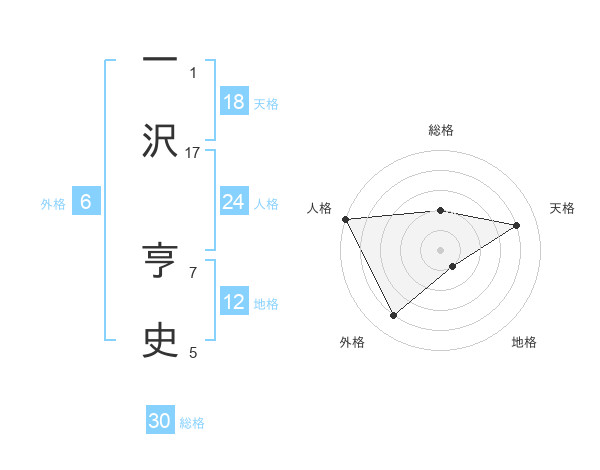 一沢 亨史さんの総格は30画の2点!