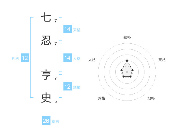 七忍 亨史さんを姓名の画数から五運を鑑定