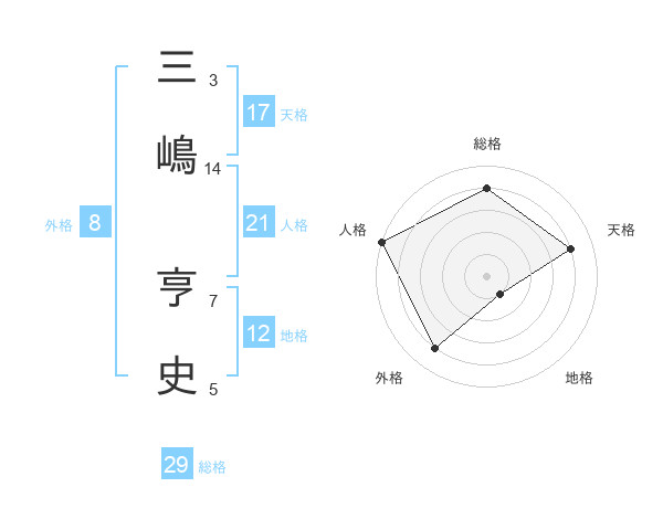 三嶋 亨史さんを姓名の画数から五運を鑑定