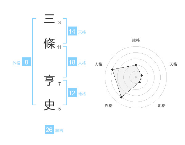 三條 亨史さんの総格は26画の2点!