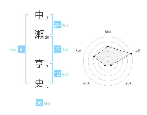 中瀬 亨史さんを姓名の画数から五運を鑑定