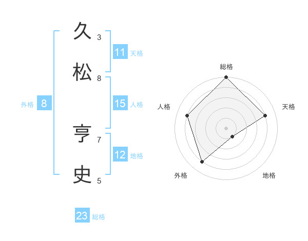 久松 亨史さんの総格は23画の5点!