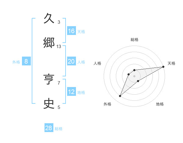 久郷 亨史さんを姓名の画数から五運を鑑定