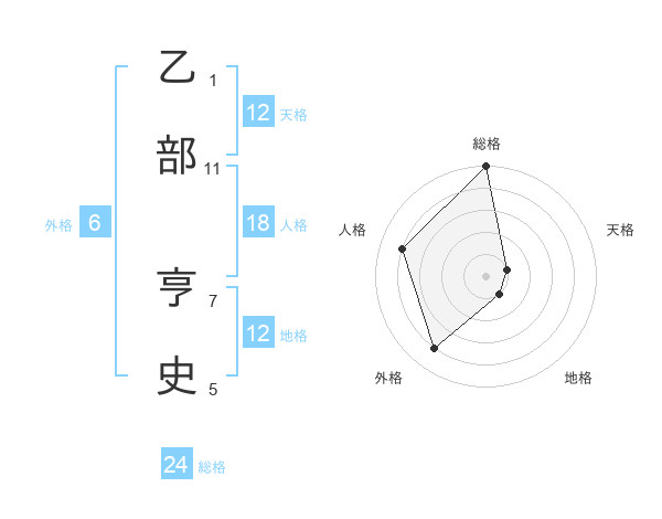 乙部 亨史さんを姓名の画数から五運を鑑定