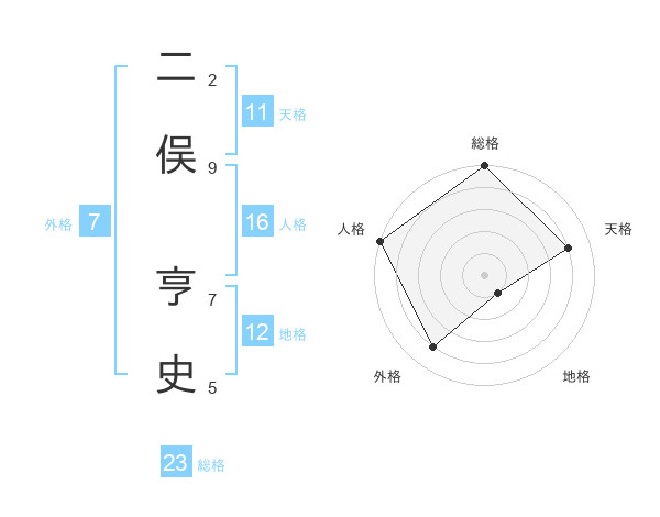 二俣 亨史さんの総格は23画の5点!