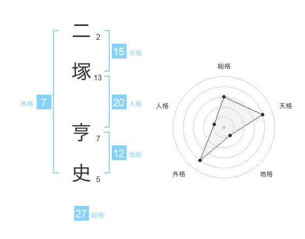 二塚 亨史さんの天格は15画の4点!