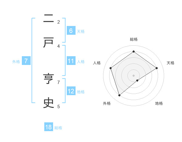 二戸 亨史さんの総格は18画の4点!