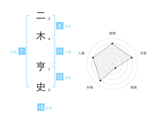 二木 亨史さんの天格は6画の4点!