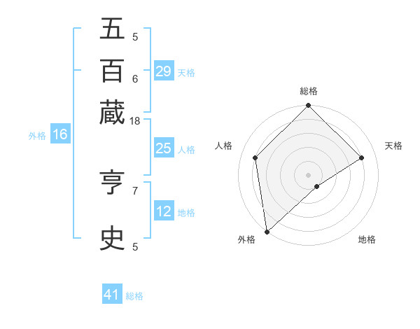 五百蔵 亨史さんの総格は41画の5点!