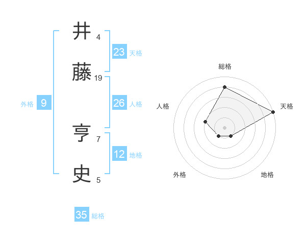 井藤 亨史さんの総格は35画の4点!