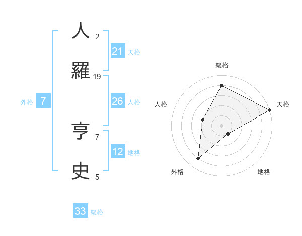 人羅 亨史さんの天格は21画の5点!