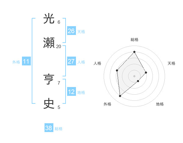 光瀬 亨史さんの総格は38画の4点!