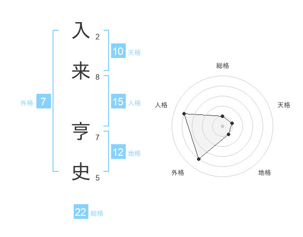 入来 亨史さんの総格は22画の1点!