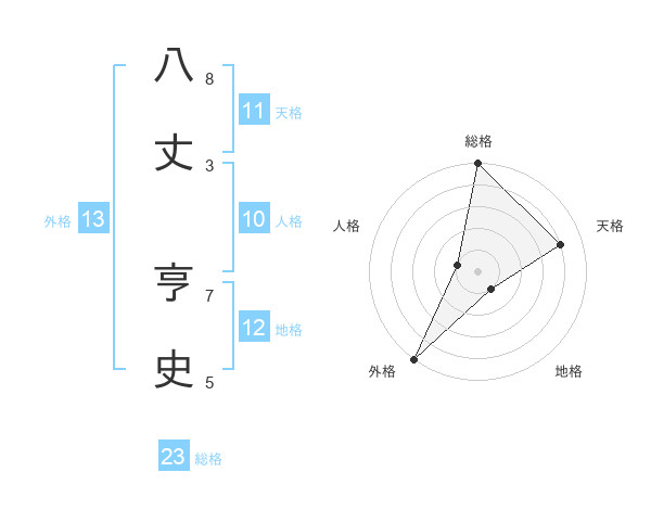 八丈 亨史さんを姓名の画数から五運を鑑定